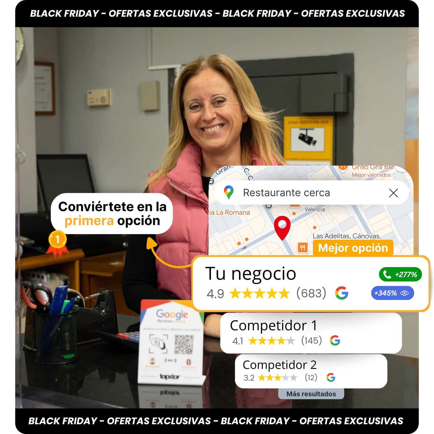 Cuantas más y mejores reseñas tengas, más arriba apareces en las búsquedas de Google y más clientes atraes.