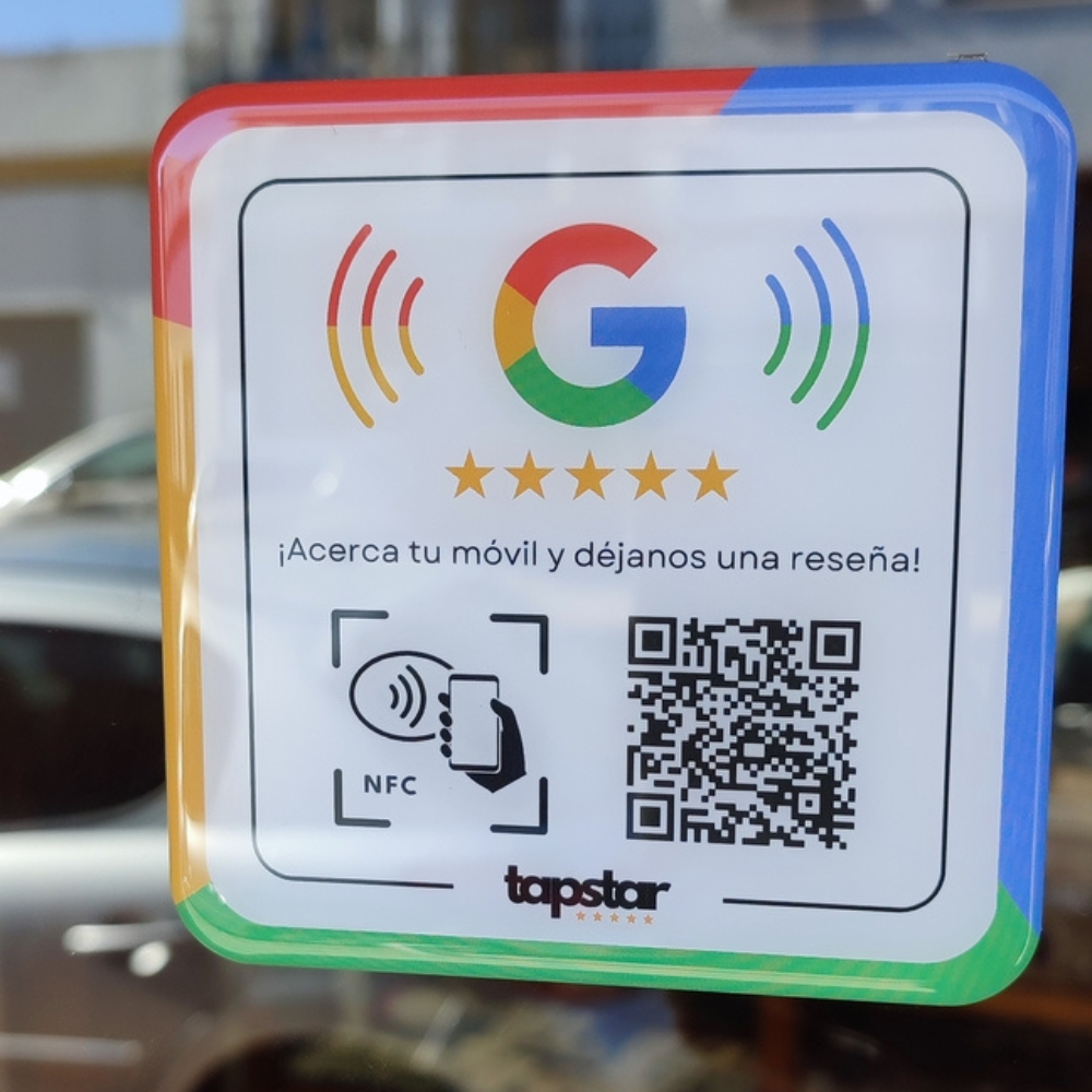 Significa tecnología sin contacto. Los dispositivos Tapstar llevan incorporado un Chip NFC que detecta el teléfono del cliente y le lleva directamente a ponerte una reseña en Google.